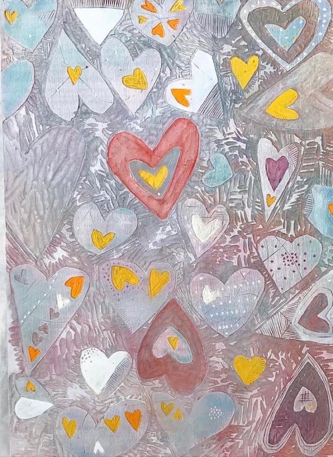 11.5” x 16”. Hand carved wood panel, milk paint. Finished with a protective layer of varnish. 2017.