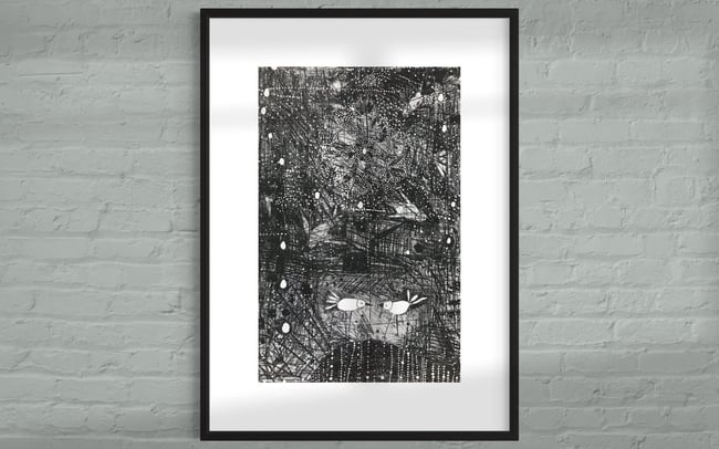 17 3/4" x 27 3/4" printed image on 22"x 30" archival paper. Aluminum Plate Lithograph. 2014.
