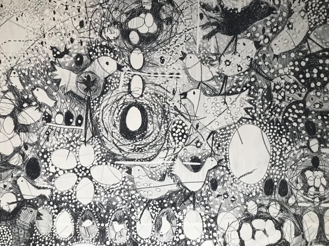 This piece is part of a four part series of lithograph prints I made during my studies at Penland School of Crafts in North Carolina. I was reflecting on the process of finding home and creating community.