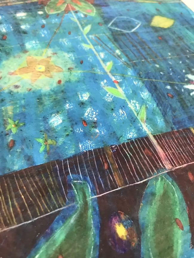 This colorful print is an archival reproduction of a colored pencil drawing.