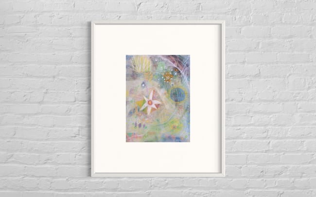 This piece is from a series abstract drawings I made while living in Charlottesville, VA. I was reflecting on my relationship to community and playing with new media. My process involves a lot of layers, often beginning with a simple pattern and then intuitively layering onto the design that emerges until the final image begins to show itself. The process is very healing and joyful—I never know what a final image will look like when I begin!