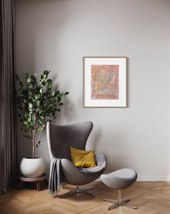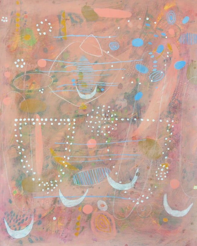 This piece is from a series abstract drawings I made while living in Charlottesville, VA. I was reflecting on my relationship to community and playing with new media. My process involves a lot of layers, often beginning with a simple pattern and then intuitively layering onto the design that emerges until the final image begins to show itself. The process is very healing and joyful—I never know what a final image will look like when I begin!