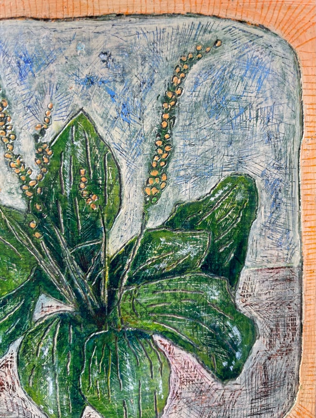 Often overlooked as a common weed, Plantain is a small plant with a lot of strength and medicinal gifts to offer. I often find this leafy plant growing up through the rocks in my gravel driveway or pushing between the cracks in the sidewalk. I am so grateful it is resilient and easy to find because whenever I need a quick balm for a bee sting it is close by ready to help! Just mash up the leaves and put them directly on the ouchie and things start to feel better.