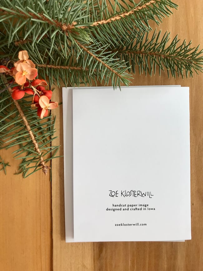 Professionally printed in Decorah, IA on white 80lb cardstock.